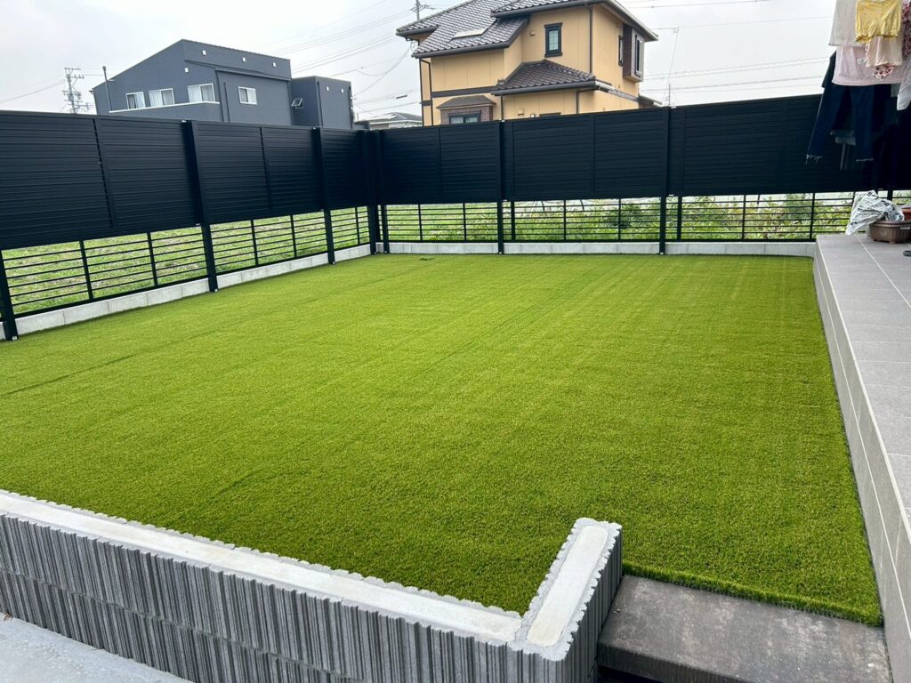 【施工事例】雑草の悩みから解放!家族が裸足で楽しめる高密度人工芝