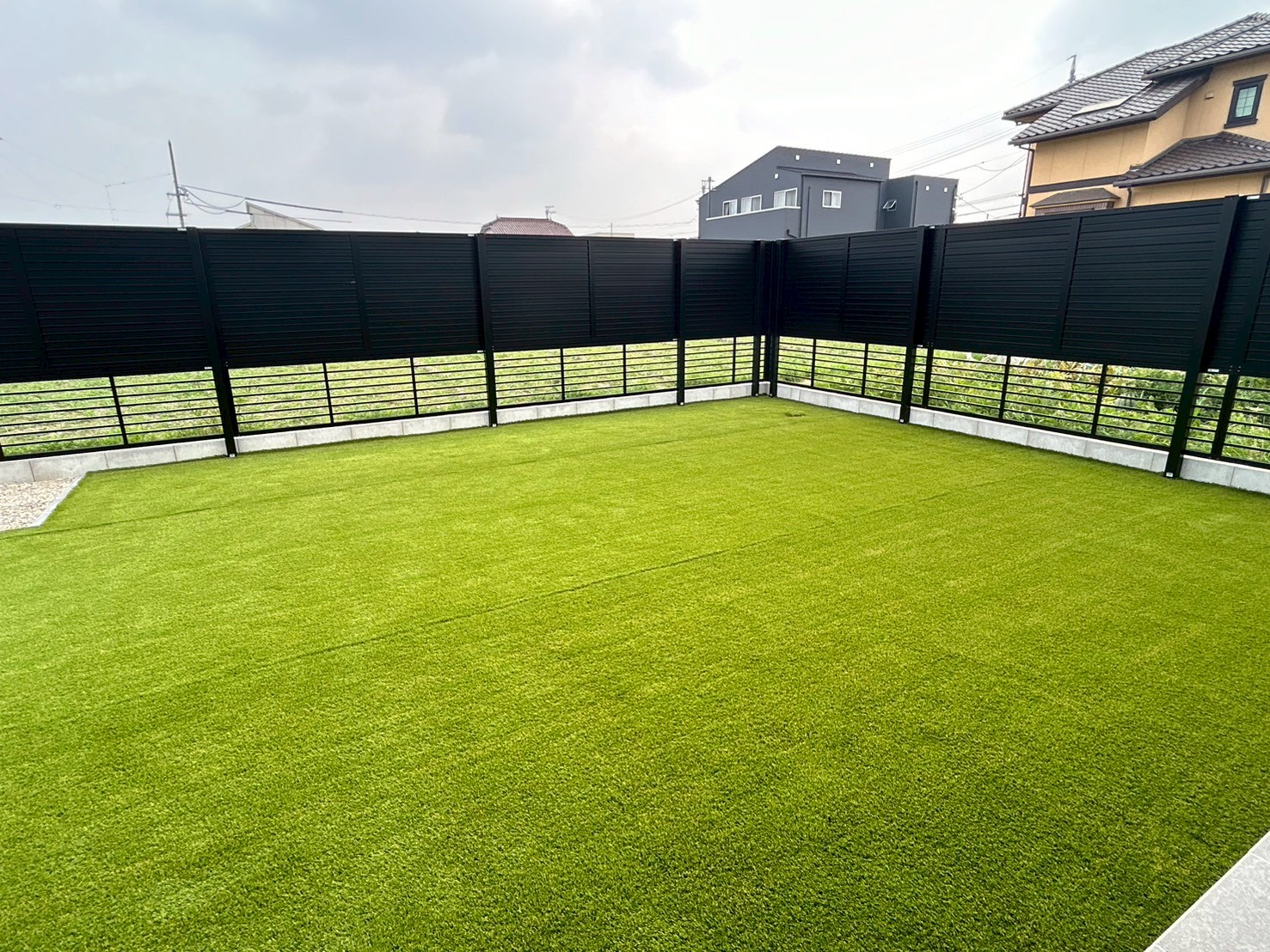 【施工事例】雑草の悩みから解放!家族が裸足で楽しめる高密度人工芝